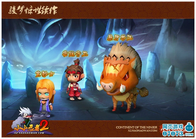 经过天使城忍者大师的一番指点后,玩家会被派往恶魔城进行一番历练,但天使城通往恶魔城的幽邃密道中,不知何时闯进了一直巨大的暴牙兽王,这个家伙的“兽品”很不好,经常伤及此地的居民,顺手除掉它吧!