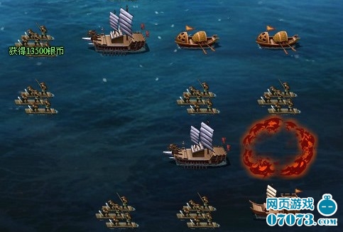终于,入侵开始了!只见远方黑压压一片全是海盗船,木筏、艨艟、楼船、桥舡……看这阵容,貌似海盗的造船技术还不错啊!不过实力如何,还是要对抗之后才见分晓,点击一艘海盗船就可以进行攻击了,若能成功将其击败,海盗船将爆裂成一团红炎,灰飞烟灭,同时我们会获得少量银币,银币虽少,但贵在数量多嘛!
