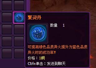 涅槃的过程又藏有什么玄机呢?首先,我们得准备好一些聚灵丹,这种神奇的丹药能够积聚异火之灵气,对异火的涅槃有着不可或缺的助力。同时,若是对涅槃后的异火属性不满意,可以通过聚灵丹的功效,强行改变异火种类,比如:兽火涅槃成奇异鬼火,若对此火不满意,则可进行刷新,系统会在12种同层级的异火中随机刷新一种。