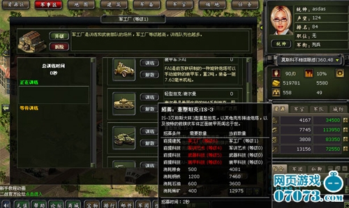 风靡一时的甜豆网《二战风云》游戏由于真实还原了二战时期所有的建筑、武器、以及作战策略,令二战迷们心动不已,能够亲自指挥大军作战,体验攻城掠地快感的同时,也要做好被征服、和被掠夺的准备,首先优先发展资源时,大量造卡车,后期需要大量的粮食补充,所以,市政厅升级到9时,粮食基地大约建8-10个,并升级到9级,便高枕无忧没有粮食养不了兵,出不了部队!