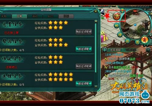 今天的循环任务又有什么了?7711《大明英雄传》超直接,日环任务不再是100次、200次让你做不完,一天就5次,点击屏幕右上角的“活”即可清除看到自己需要做的任务和可以得到的奖赏。用上传送符,10分钟搞定所有的循环任务!