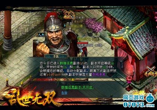 随着页游行业的发展,“烧钱坑爹”的名号逐渐成为页游的代名词。不花钱,没有银子,那又应该怎样才能够提升战斗力媲美高富帅?《乱世无双》为了让广大玩家都能够在游戏中开心畅玩,摒弃了传统游戏“没钱活不下去”的状况,特推创新的公平副本——群雄逐鹿,为广大玩家提供了一个能够“免费刷银子”的场所。群雄逐鹿副本将在每天特定的时间开启,达到相应等级的玩家都可前往挑战。副本内会有大量的绑定银子、高阶紫装、武将卡以及坐骑炼化升阶材料掉落,玩家只需击杀副本内定时来袭的怪物,即可轻松获得高额回馈,为无双之旅提供必要的支持和保障!