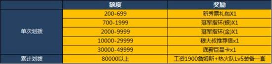 2. 充值类活动奖励将由最高到最低发放,每位玩家若达到累计指定额度只可获得一种奖励。