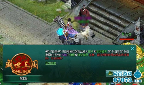 “亲,包邮哦!亲,这是送的小礼品哦!亲,现在买1送1哦!”各种TB体,大家绝对不会陌生,面对这些信息,你们又是否开心呢,还是会有所担忧呢?在要玩《盛世三国》里最新出炉的聚宝盆活动,绝对让你们放心,亲,这可是真真实实送的哦,绝对没有虚假!