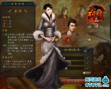 在要玩《列侯》中,主角有帝胄、宦门、世家、草莽以及寒门五种出身,每个角色在武力智力和魅力三围上都各有优势,且各人天赋和部队类型都有不同。玩家们在选择角色的时候,根据自己的喜好权衡再三,也许,在那动荡不安的穿越战场上,会与你前世的她相遇,谱写跨越千年的爱情约定哦。