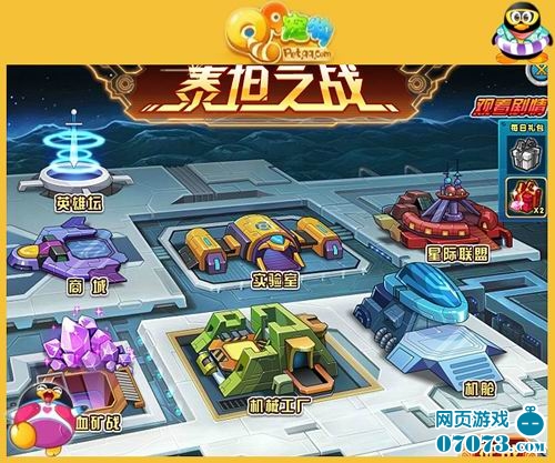 “泰坦之战”全新界面绚丽夺目,进入华丽多姿的主界面,想必会让企鹅玩家们眼前一亮。极具科幻、现代的多栋建筑,个个特色鲜明活力十足,而且每个模块都融汇了最为先进的设计。时尚动感的界面,让Q宠企鹅玩家完全忘却喧闹的夏日,全身心投入到星级大战中。