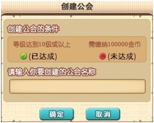 建立公会所需的等级限制并不高,而建会所需要的100000金币看似很多,其实不然。初入游戏的玩家在经过几场战斗完成相应任务很容易就能积攒到第一个10000金。虽然只是建会需要的十分之一,但几个志同道合的朋友联合起来,马上就能建立起属于自己的公会。若玩家觉得如此建会过于麻烦,也可以购买公会创建道具简化流程。