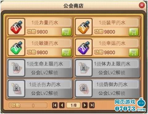 加入公会除了能方便玩家之间更好的游戏与交流外,更重要的是它所能提供的福利。公会商店有着种类繁多的各种道具,从药水、强化材料到宝石应有尽有。不过这些商品的换取可是跟公会等级直接挂钩的哟。如果想获得更高等级的商品,就赶快加入到公会的建设中去吧!