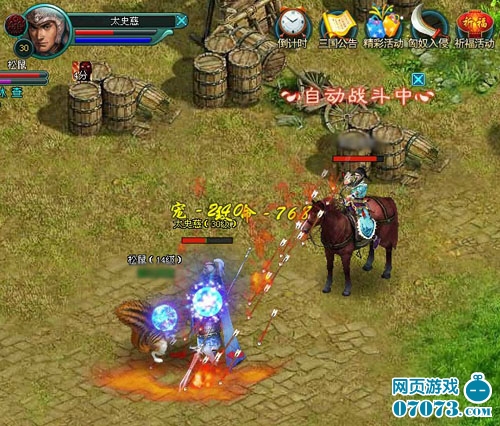 小将奉命前来会这太史慈,听闻这太史慈乃是当世少有的神射手,不觉手痒。这太史慈见是一无名小将不免轻敌,竟没有上坐骑。虽然本人没有百步穿杨的绝技,不过我有箭雨阵、箭塔,再加上宠物在一旁骚扰,骑上小马速度更是甩他两条街,轻松就降服了这员大将。