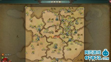 世界地图点江山。地图系统全面升级,将开启无比震撼的世界地图,给予玩家终极梦幻的对决舞台。世界地图上详细记载了玩家所有能够达到的区域,其中包括司隶、豫州、兖州、徐州、青州、凉州、并州、冀州、幽州、扬州、荆州、益州、交州共十三个州。