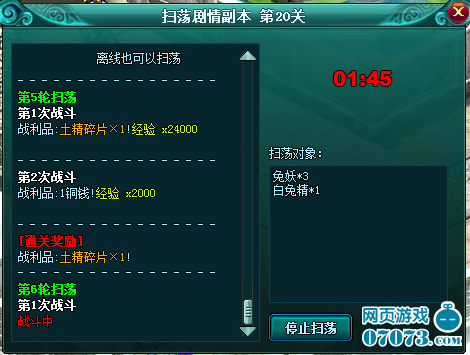 已经挑战过的副本,可以用“扫荡”功能,快速刷副本,一次搞定,但要注意体力值哦,用光体力,搞得体力透支就不好玩了。