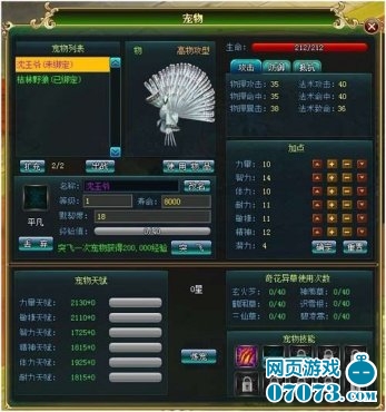 天生评价:宠物有5个等级的天生评价,分别是平凡、稀有、极品、仙化、圣兽。
