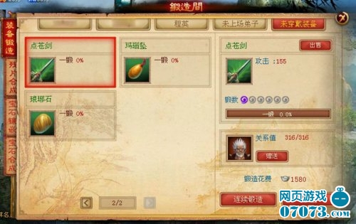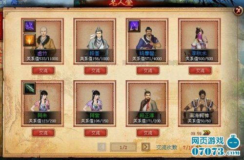 继续剧情,玩家等级达到21级之后可以开启名人交流。这时玩家只用交流蓝色名人(段誉、鸠摩智),稳步达到23级,拿到升级送的武器残片合成,卖掉铁剑全力升级合成的武器点苍剑。