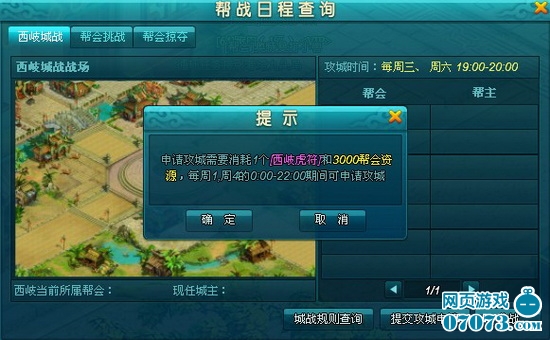 战争开始后所有在线的帮会成员都会收到邀请参加战斗的提示框,可直接操作传送进挑战地图。打开帮会界面-挑战查询-帮会挑战界面,如下图,点击“参战”可随时在战争期间进入挑战地图。挑战发生在帮会领地内,发起战争的一方为进攻方,领地所属帮会为防守方,挑战正式开始后双方帮会成员可进入防守方领地内开始战斗。