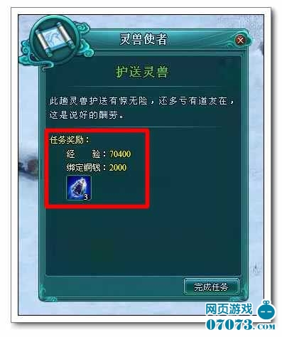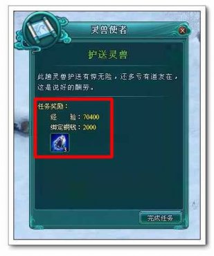 每日三次的灵兽护送,每次护送花时几分钟,成功即可获得海量经验,一定量铜钱和不同级别的宝石,真是得来全不费工夫。这些奖励的丰厚程度由你所护送的灵兽等级决定,例如,护送蓝色灵兽比绿色灵兽获得更多奖励,护送前可以随机刷新灵兽,一不小心刷到紫色灵兽,那么你就赚翻了。