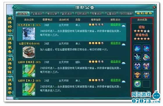 刚入门的新手便可获得一张新手卡,用新手卡可以兑换大量的物品。新手十天每完成当天的任务便可以获得灵宠灵性丹、一袋宝石、各种等级的强化石、经验丹等奖励,这些物品不但可以锻造装备、培养宠物,还可以提升任务经验哦。挑战各种活动副本,同样是奖励多多。获得的奖励用途多多,能满足多方面的要求呢。