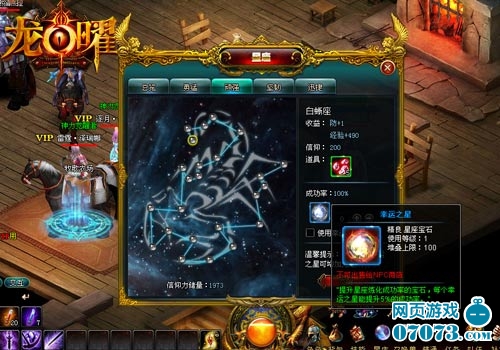 玩家们需要注意的是,每一次的星座觉醒都有一定的成功率。游戏中,玩家可以使用“幸运之星”来提升成功率。当玩家将每阶段星座全部觉醒之后,还将获得额外的属性加成。