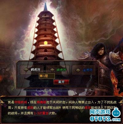 闯关过程: 进入“洛阳”的“炼魂塔”处。点击试练管理官,对话中选择“开始试炼”:玩家必须带有试炼符出关进行战斗,将相应试炼符交给守关武将,就可以开始闯关。由于敌人众多,你必须不断地进攻,直到将最终的敌人击败。玩家每天最多可以闯关三次。