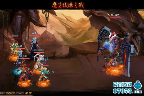 所谓魔高一尺道高一丈,面对强大的魔王,自然也不能用普通的方法对付了。游戏中,玩家需要组队才能挑战各个BOSS。这就有点类似多人副本,需3人组满之后开始, BOSS不管挑战成功与否都可以无限打,但记住只有前3次挑战成功才有奖励。不过与多人副本不同的是,每局魔王试炼只有一个怪,但血量和攻击力都很高。而玩家方面也和多人副本不一样,每人只能派一个主角外加一个伙伴上场,也就是说最多6个角色打BOSS,建议大家组队时先商量好,谁负责带输出伙伴,谁带肉盾。同时这里偷偷告诉大家,BOSS似乎并不能被控制。所以最好不要带孟婆\铁扇这类伙伴!