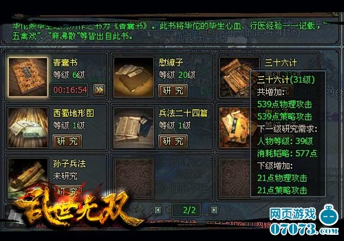 当玩家将等级提升至30级时,有关于生命值、技力的兵法不出意外应当不会差到哪去,所以此时玩家可以暂时放开这些兵法,转而研究提升攻击力和防御力的兵法。此处鄙人推荐《慰缭子》和《三十六计》,因为这两本兵法能够同时提升玩家的物理攻防和策略攻防两大属性,可以达到事半功倍的效果。