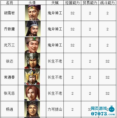 名将各具不同的天赋,在贸易,经商,战斗中发挥着不同的才能。让你在游戏中事半功倍。