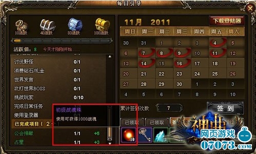 每日登陆是获得战魂最简单的方法,只需点击“签到”即可得到丰富的奖励,其中就包含初级战魂单,打开即可获得1000战魂。