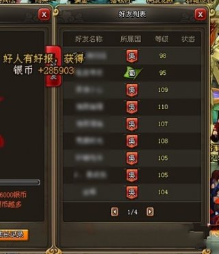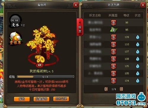 紫霞《龙将》摇钱树新版更新界面,大家可以看到界面右侧的好友列表,在好友列表里面会显示好友的名称及所属国别,在每一个好友名字的后面还有一个水滴状的小图标,这个图标就代表着你的好友今天是否给摇钱树浇水,你可以点击好友名字为他没有浇水的摇钱树进行浇水。当然VIP到哪里都是有特权的,在紫霞《龙将》里面VIP4以上的玩家还将开启批量浇水功能,能够一次性为自己好友列表中的所有人浇水。你每为一名好友浇水,你就能获得一定的银币奖励,也就是说你为别人浇水的次数越多,那么你所获得的银币也就越多,玩家为其他人浇水之后,系统会弹出奖励信息。当然,这样的助人奖励只能领取30次,再为更多的好友浇水,就是无偿奉献了!