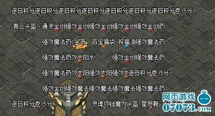 在256玩《傲视遮天》逐日神剑需要用逐日积分来换,以1500逐日积分到龙城的逐日使者处换取的。而逐日积分可以通过每天系统刷一次的逐日天神来获取,打一次大概50分。每天只会刷一次,想要逐日神剑就要把握机会哦。如果光是靠打逐日天神来获得积分,也未免太慢了,一天才50积分,1500要30天,估计有这个耐性的人不多。但是也没办法呀!我建议大家,每天去守逐日天神,打个十来天,最少也有400~500积分,省了两三百块钱。然后自己在花点钱去商城购买神螺在逐日神殿使用刷怪来获取积分,一个神螺大概在60-100分之间,大概在买十一、二个神螺,神剑就到手了。你的攻击也就跟上来了……