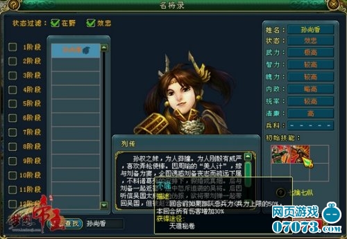 在《梦想帝王》里,孙尚香不仅拥有极高的武力,智力、魄力、统率也相对较高,其自带双技能中的“不屈”技能,让其在战斗中拥有极强的反击能力,经常能上演反败为胜的好戏。