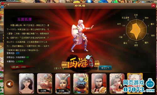 听说要玩《西游后传》玲珑塔里来了位美丽又有文采的小狐狸,虽然是跟随夫君牛魔王一起进入游戏加入取经队伍,但娇俏可人的她让人爱怜。这不,好色的八戒又忍不住靠近了。不过这位可人儿似乎有点眼熟,她不就是几千年前八戒错手一钯拍死的玉面狐狸么?这次作为主角开通玲珑塔71级获得的星君,想必实力非凡,八戒啊八戒,为师也帮不了你啦……