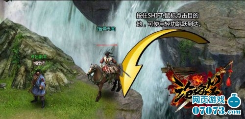 当然,轻功的作用并非只是耍酷而已,在按住“shift”键施展轻功进入腾空状态后,选择技能快捷键,还可以施放各种技能,也就是《沧海笑》玩家熟悉的“跳跃攻击”。当敌人气势汹汹的冲到你面前,举起锋利的兵器向你袭来,当务之急,当然要施展轻功,避开敌人锋芒,之后,当敌人一而再,再而衰之时,再在空中以优美的姿态施展技能将敌人一举击破,出其不意攻其无备!