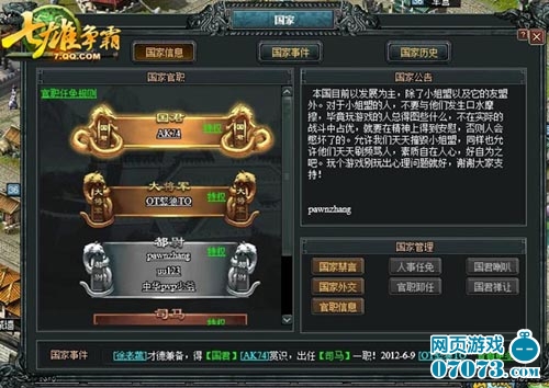 《七雄争霸》新版本的不断推广,从君临天下、血战边城、到现在的金戈铁马,无不诠释着国君系统这一主题。国君系统不仅发展壮大了七雄玩家的整体实力,罢免制度更是成就了一代君王的不朽风范。敌国间的战争不仅是荣誉的象征,也是实力发展的必备手段。友盟间通力的合作,天降奇兵起到了不可磨灭的作用。