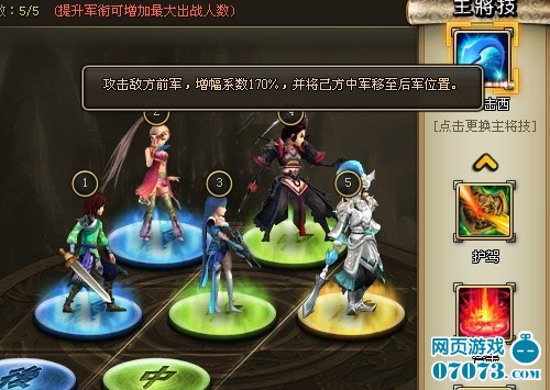声东击西介绍:主将攻击前军,增幅系数170%,并将己方中军移至后军位置。一看之下,这是防御强力攻击中军的一个技能,缺点很明显,就是对方没有鲁肃或者姜维。不过如果你真的喜欢这个技能,可以招募司马懿。