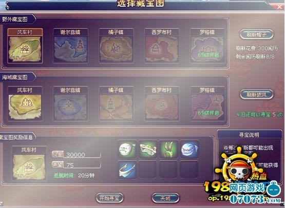 在198《热血海贼王》中,玩家每天都拥有一定的寻宝次数,通过藏宝图进行寻宝操作即可获得奖励!此外,打劫其他寻宝玩家的船只也可获得奖励!