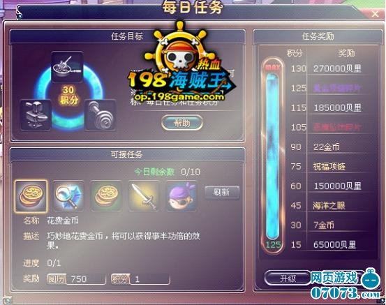 每日任务也是赚取贝里的一个途径。通过每日任务的提示,完成相应的任务就能获得相应的积分,积攒足够的积分就能获得大量的贝里以及装备、金币奖励。当然,每天的签到任务也能有不少的贝里收入。