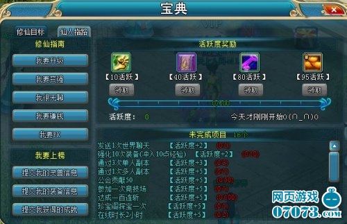 游戏亦同人生一样没有一个目标将是一件可怕的事情,有目标你就有奋斗的方向,为了让玩家在《仙御风云》中找到更多的游戏乐趣,引导玩家更快的熟悉游戏了解游戏的内容,游戏内设计了独特的目标系统,让玩家不再迷茫不再无所事事。