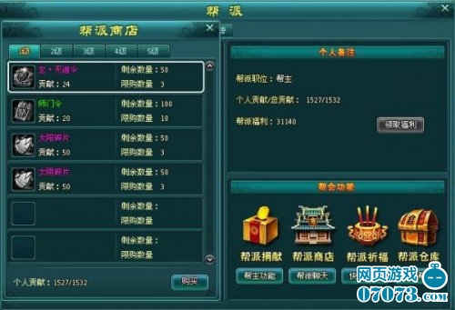 7789神魔仙界帮会最基本的玩法就是帮会建筑,帮会建筑包括主殿、商店和仓库。其中商店中有许多游戏中常用的道具,甚至还有商城道具,不过在帮会商店中,只需要用帮会贡献就能卖到。