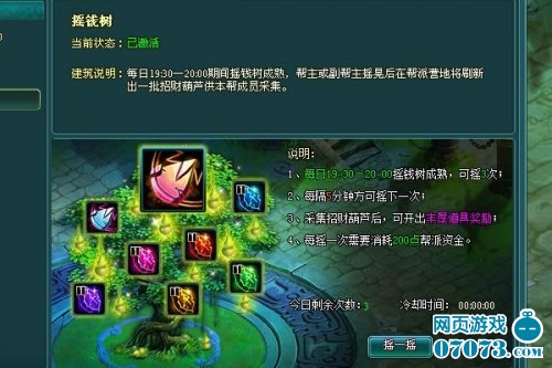 7789神魔仙界的帮会福利可不止商店一个,帮会祈福和帮会摇钱树更是想不到的精彩。帮会祈福和帮会摇钱树是类似摇奖的玩法。系统为玩家提供了更种奖品,其中还有稀有道具,玩家只需轻轻点击摇奖,人品爆发的话,就可以带走稀有道具宝石、紫色装备碎片等等,有木有!