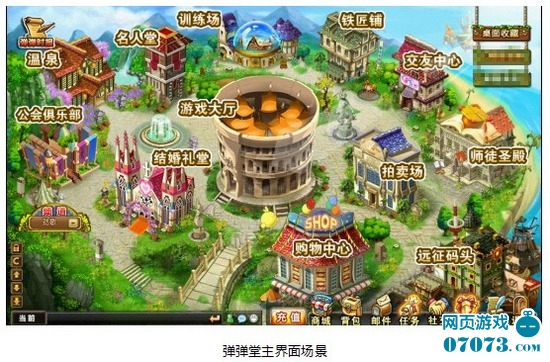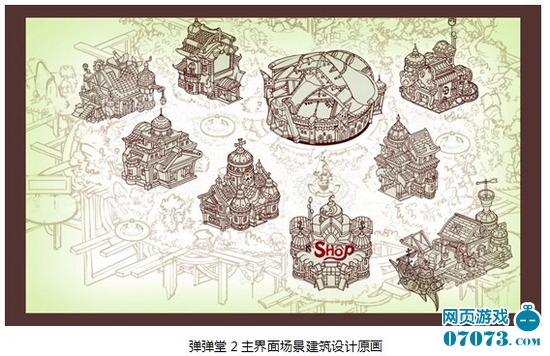 怎么样?全新的建筑原画是不是让你大开眼界了呢?接下来我们来回顾一下陪伴我们三年的《弹弹堂》游戏广场,并透过《弹弹堂2》主场景的原画手稿,我们再看看弹弹堂2全新的建筑和主场景吧。