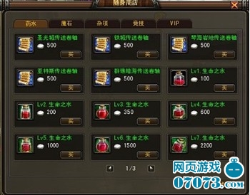 而最后一页则是VIP购入高级符文卷轴的地方,虽然价格小贵,但效果是不容置疑的。工欲善其事,必先利其器,随身商店善加利用可以使您方便百倍哦!49you《惊天战神》等您来闯!