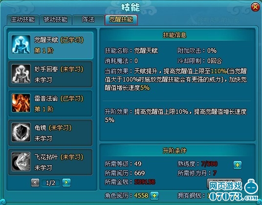 觉醒技能系统可增加战斗的策略,加强弱势方的战斗能力,战斗中使用得当说不定会有意想不到的效果。玩家等级达到48级的时候便可以开启自己的觉醒技能了,每一个职业的觉醒技能都一样,觉醒技能必须有技能书才能学习和升级。
