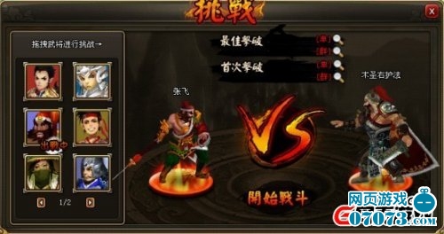 每位武圣拥有“左”“右”两位护法,玩家需要先击败两位护法才能挑战武圣.)“七武圣”的战斗模式与普通的战斗有所不同,需要先进行一次“单挑”之后才能正式的进行战斗。单挑玩家可以挑选任意一名武将(包括主将)与武圣护法或武圣进行单挑单挑中如果获胜,则会增加正式战斗时我方的初始士气,如果失败则会增加敌方的初始士气。正式战斗正式战斗是常规的5V5战斗,战斗胜利后可获得武圣元神.