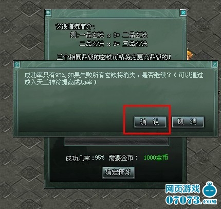这个就得有充足的铁来合你自己的武器了,首先你合开开游戏云傲视遮天七品玄铁的时候拿一个6铁合你其他的装备,就是做下铺垫还要买15的付和10的都可以合六的。百分之50失败,如果失败之间合你要合的七铁马上放进去,千万不要忘放付有时间。为了快点很多就是忘把付放进去了然后按确定那样,傲视遮天玄铁合成成功几率会打到80%的。