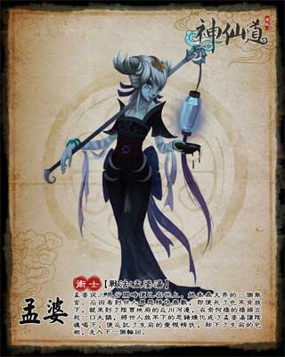 ¡¡¡¡ÃÏÆÅ´ÓÈý½ç·Ö¿ªÊ±±ãÒÑÔÚÊÀÉÏ£¬Ëý±¾ÎªÌì½çµÄÒ»¸öÉ¢¹Ù¡£ºóÒò¿´µ½ÊÀÈ˶÷Ô¹Çé³ðÎÞÊý£¬¼´±ãËÀÁËÒ²²»¿Ï·ÅÏ£¬¾ÍÀ´µ½ÁËÒõ²ÜµØ¸®µÄÍü´¨ºÓ±ß£¬ÔÚÄκÎÇŵÄÇÅÍ·Á¢ÆðÒ»¿Ú´ó¹ø£¬½«ÊÀÈ˷Ų»ÏµÄ˼Ð÷Á¶»¯³ÉÁËÃÏÆÅÌÀÈÃÒõ»êºÈÏ£¬±ãÍü¼ÇÁËÉúǰµÄ°®ºÞÇé³ð£¬Ð¶ÏÂÁËÉúǰµÄ°ü¸¤£¬×ßÈëÏÂÒ»¸öÂֻء£
