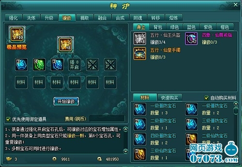 ¡¡¡¡±¦Ê¯ÏâǶ¿ÉÒÔ´ó´óÌá¸ß×°±¸ÎäÆ÷µÄЧ¹û£¬ÊÇÌá¸ßÕ½Á¦µÄÒ»¸öÓÐЧ;¾¶¡£ÔÚÉñ¯ºÏ³ÉÀïÃæ£¬¿ÉÒÔ½«µÍ¼¶±¦Ê¯ºÏ³É¸ß¼¶±¦Ê¯¡£¶øÇÒ×°±¸ÎäÆ÷Ç¿»¯µÈ¼¶Ô½¸ßÄÜ¿ªÆôÏàÓ¦µÄÈý¸ö±¦Ê¯¿×¡£