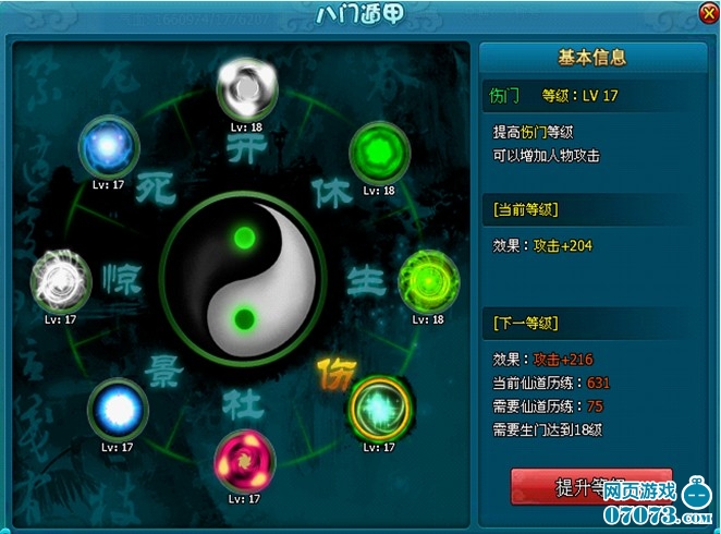 ¡¡¡¡´ò¿ªºó¿ÉÒÔÑ¡Ôñ¶ÔÓ¦µÄÃŽøÐÐÐÞÁ¶£¬ÐÞÁ¶ÐèÒªÏûºÄÏɵÀÀúÁ·Öµ(ÏɵÀÀúÁ·ÖµÍ¨¹ý²Î¼ÓÌìϵÚÒ»ÏɵÀ»á»ñµÃ)£¬°ËÃŶݼ×Ãæ°åÈçÏÂͼ£º