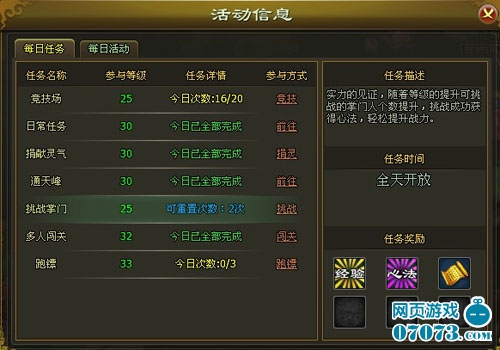 ¡¡¡¡¡¶ÒÐÌì¡·ÖÐÈËÎïµÈ¼¶´ïµ½25¼¶±ã¿É²Î¼ÓÌôÕ½ÕÆÃÅÈË¡£ÃÅÅÉÕÆÃÅÈËÕÆ¹Ü×ÅÒ»ÅÉ´óСÊÂÎñ£¬ÏóÕ÷×ÅijһÎ书ÓëµÀµÂµÄ±ê×¼£¬¶àÉÙÕÆÃÅΪÁËÃÅÅɵĹâ´óÈÙÈ裬·ÅÆúÁËÉúÃü£¬ËûÃÇÖµµÃÎÒÃÇ×ð¾´£¬×÷Ϊ½ºþС±²µÄÎÒÃÇ£¬Ò²Ó¦¸Ã¾ß±¸³õÉúÅ£¶¿²»Å»¢µÄ¾«Éñ£¬ÓÂÓÚÏòËûÃÇ·¢ÆðеÄÌôÕ½£¬¡¶ÒÐÌì¡·ÕÆÃÅÈËÌôսϵͳÂú×ãÄúµÄÒªÇ󣬸ϽôÒ»Æð¼ÓÈë°É!»÷°ÜÕÆÃÅÈ˿ɻñµÃ´óÁ¿¾ÑéÓëÐÄ·¨£¬¶øÐÄ·¨±ãÊÇÐÞÁ¶ÎäÁÖÃØ¼®±Ø±¸ËùÐè¡£¾Ñ鵤µÄ¼Ó³É×÷ÓÃÔÚÕâÀïÒ²ÊÇÓÐÓõÄŶ¡£