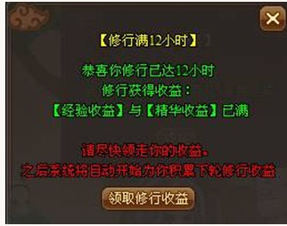 ¡¡¡¡ÐÞÐÐÊÇÒÔÿ12¸öСʱΪһÂÖ£¬12¸öСʱÂúÔòÊÕÒæÍ£Ö¹Ôö³¤£¬Íæ¼ÒÐèÒªÁìÈ¡´Ë´ÎÐÞÐеÄÊÕÒæºó£¬²ÅÄÜ¿ªÊ¼»ñµÃÏÂÒ»ÂÖÐÞÐеÄÊÕÒæ¡£ËùÒÔ´ó¼ÒҪעÒâÔÚÐÞÐÐÂú12Сʱºó£¬¼°Ê±ÁìÈ¡¾ÑéºÍ²é¿ËÀ¾«»ª¡£