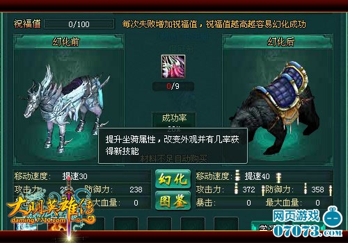 ¡¡¡¡´ó¼Ò¶¼ÖªµÀÔÚ7711¡¶´óÃ÷Ó¢ÐÛ´«¡·ÖУ¬×øÆï¿ÉÒԻû¯³É¶àÖÖÐÎ̬£¬²»¹ÜÊÇ¿¥Âí¡¢Õ½ÐÜ»¹ÊÇÍþÎäµÄÀÏ»¢¶¼ÊǸ÷ÓÐÈËËù°®£¬µ«ÊÇÏëÒª»Ã»¯³ö×Ô¼ºÏ²»¶µÄ×øÆïÒ²²»ÊÇÒ»¼þÈÝÒ×µÄÊ£¬³ýÁ˸÷ÖÖÁ¶»¯µÀ¾ßÍ⣬ÐèÒªµÄ¾ÍÊÇÈËÆ·ÁË¡£ÈËÆ·ºÃ£¬°Ù·ÖÖ®Ò»µÄ¼¸Âʶ¼Äܳɹ¦Á¶»¯£¬ÈËÆ·²»ºÃ99%µÄ¼¸Âʶ¼ÄÜʧ°Ü£¬Æ«Æ«´ó¶àÊýÈËÓöµ½µÄ¶¼ÊǺóÕߣ¬ËùÒÔ×øÆï»Ã»¯ÊµÔÚÈÃÈËÓÖ°®ÓÖºÞ!