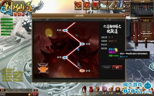 ¡¡¡¡ËùνÁùµÀ£ºÌìµÀ¡¢°¢ÐÞÂÞµÀ¡¢È˵À¡¢ÐóÉúµÀ¡¢¶ö¹íµÀ¡¢µØÓüµÀ£¬Ã¿Ò»µÀ¶¼ÊdzäÂú¼å°¾£¬²»ÊÇ·²ÈË¿ÉÒÔÈÌÊÜ¡£Íæ¼ÒÖ»Óдﵽ50¼¶²Å¿ÉÒÔ½øÈëÁùµÀÂÖ»ØËþ£¬»÷°ÜËþÖÐÑýħ£¬¿ÉÒÔ»ñµÃ´óÁ¿½±Àø¡£